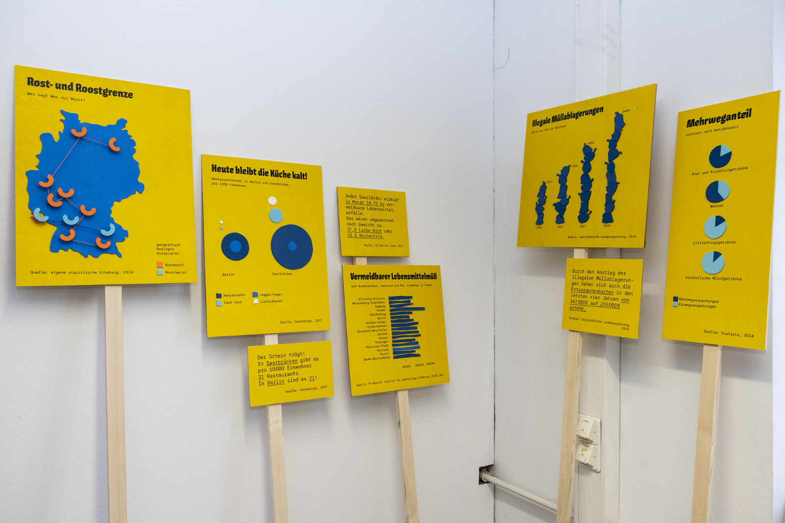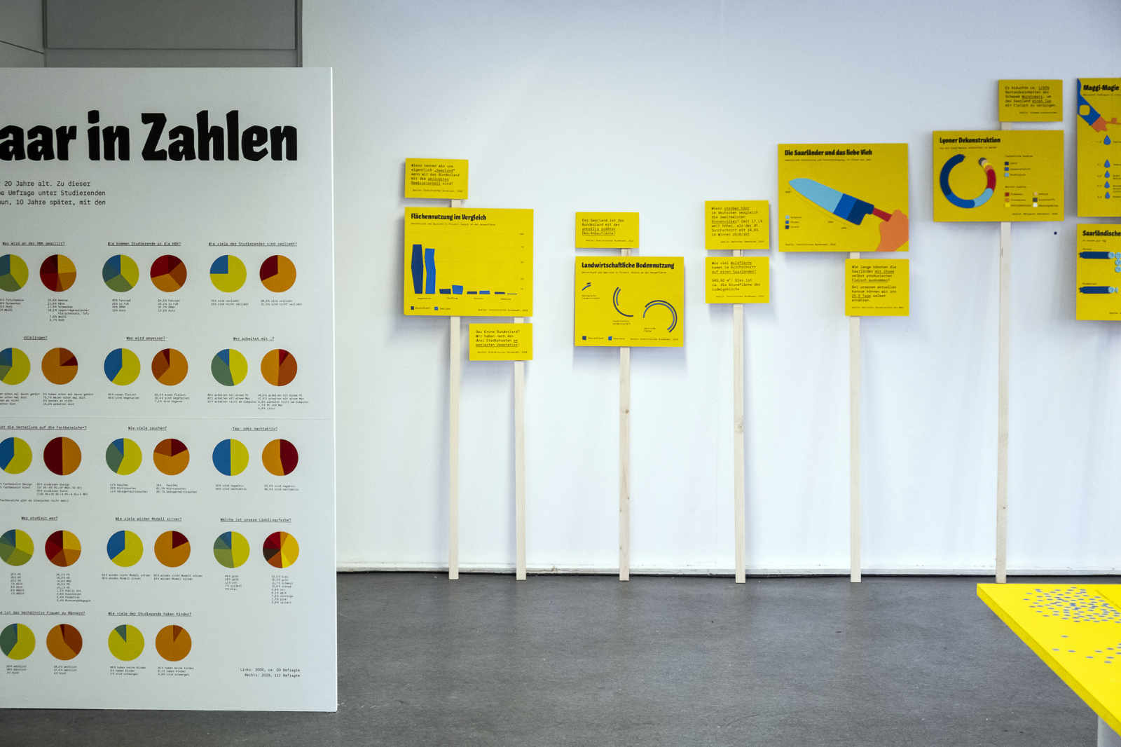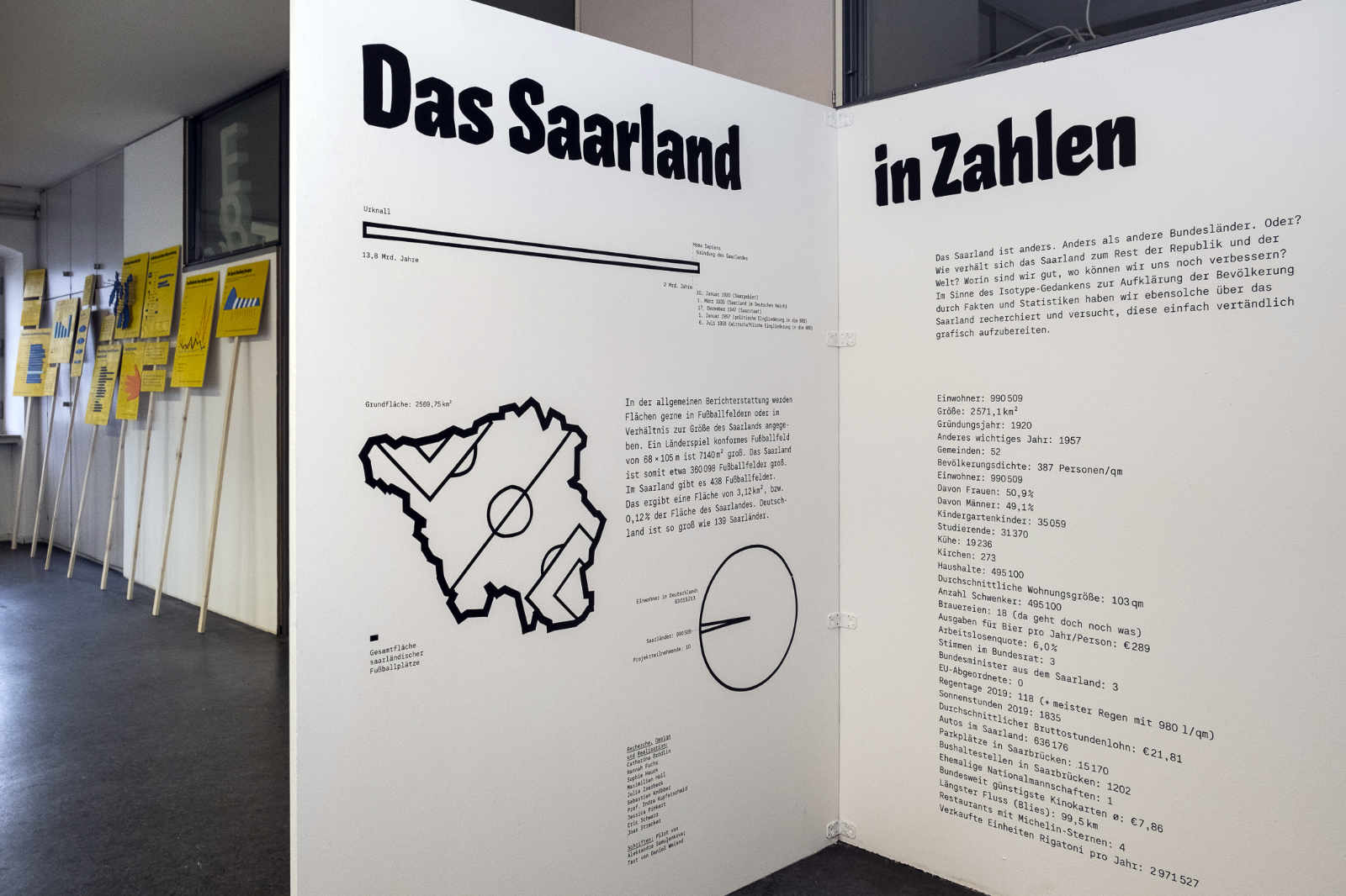 »Das Saarland in Zahlen« ist als Atelierprojekt im Wintersemester 2019/20 im Studiengang Kommunikationsdesign der Hochschule der Bildenden Künste Saar (HBKsaar) entstanden, betreut von Prof. Indra Kupferschmid.